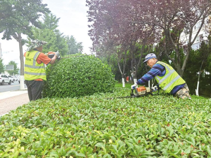 像柳要顺这样的老员工,在南大街绿化队还有很多。他们熟悉每片绿地的“脾气”,知道哪里的模纹需要勤修剪,哪棵行道树容易生虫。高温下,他们的工作服每天要湿透三四回,但没人因此降低作业标准。记者看到,经过修剪,绿篱横平竖直,草坪整齐,模纹圆润。